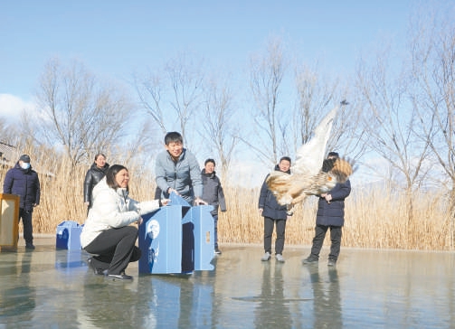 被救助的鸟儿佩戴环志后被放飞。延庆区自然保护地管理处供图